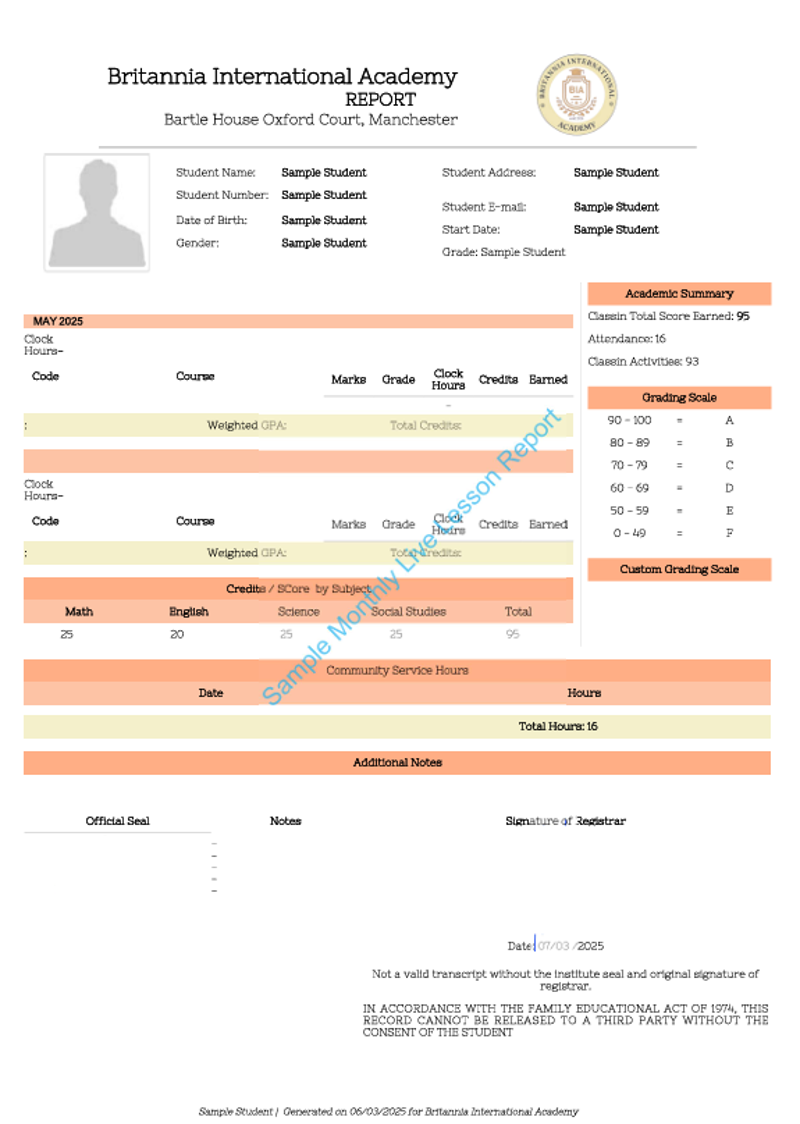 Every enrolled student receives a personalized Monthly Report—a comprehensive summary of their learning, based specifically on their participation and performance in live lessons.