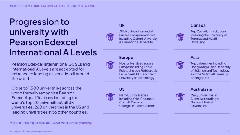Over 650 higher education institutions worldwide recognise and accept Pearson Edexcel International A Level qualifications for undergraduate entry