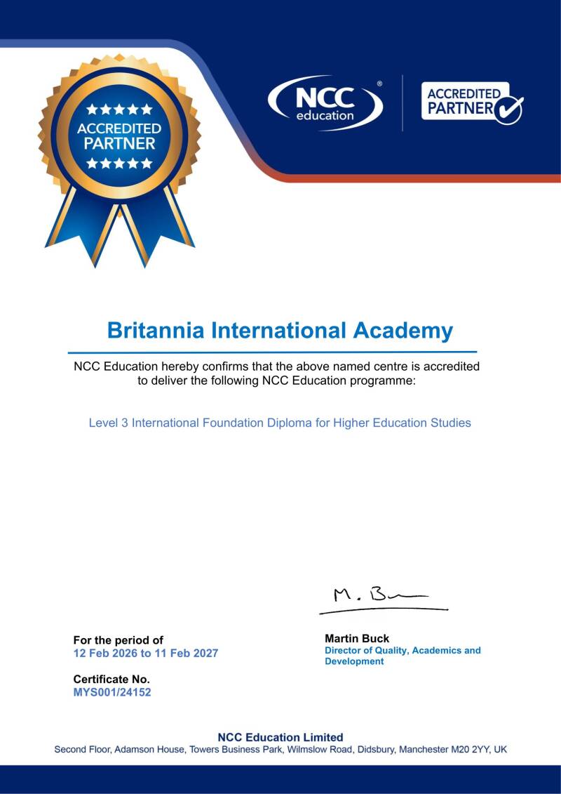 Being accredited by NCC Education means our programmes are rigorously quality-assured and aligned with the standards of British higher education. This ensures our students receive globally respected qualifications that are recognised by employers and universities around the world.